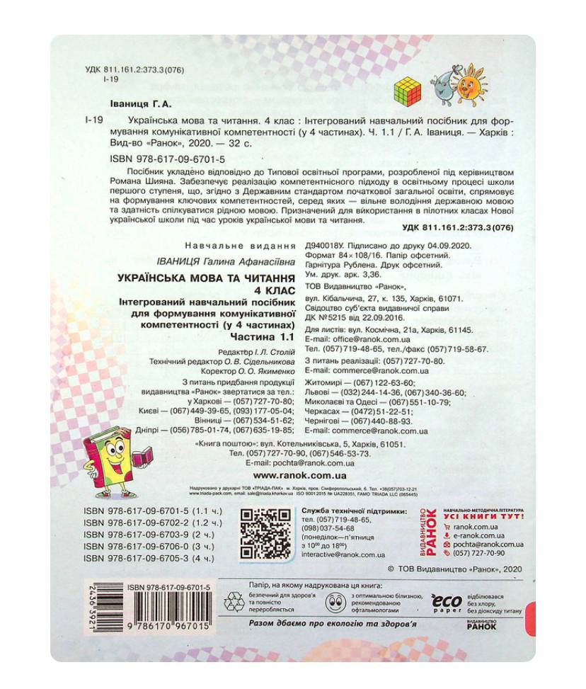 Українська мова та читання Інтерактивний навчальний посібник 4 клас Частина 1.1 НУШ Іваниця Г. Ранок У 4-х частинах