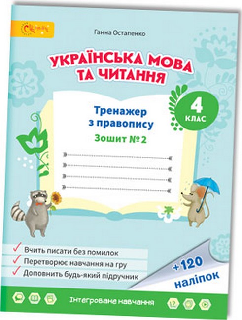 Робочий зошит “Українська мова та читання 4 клас. Тренажер із правопису № 2 НУШ" (Остапенко Г.), розроблений у відповідності до нового Державного стандарту початкової освіти і відповідає основним вимогам Нової Української Школи (НУШ). До підручника “Українськ мова та читання. Інтегрований курс” автора Г. Остапенко.