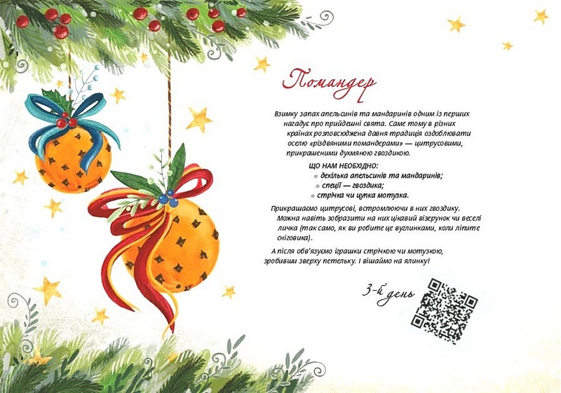 «Духмяний адвент-календар» — це не просто коробка з історіями, це маленька ритуальна скринька, що щодня дарує тепло, аромат і диво. Кожне віконечко — наче запрошення: відчиняєш його з чашкою чаю, і от — перед тобою міні-оповідання, рецепт на затишний вечір або запахова нота, яка повертає спогади. Читати цей календар — наче прогулянка по святковому місту: світло вікон, сміх, маленькі таємниці й великий затишок.
