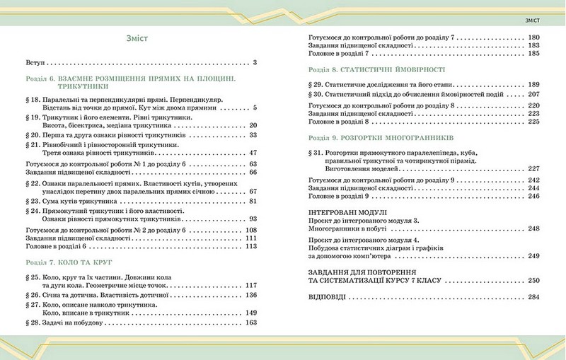Наприкінці кожного розділу запропоновано вправи для підготовки до контрольної роботи, завдання підвищеної складності, підсумки. Призначено для учнів 7 класу закладів загальної середньої освіти й учителів математики.