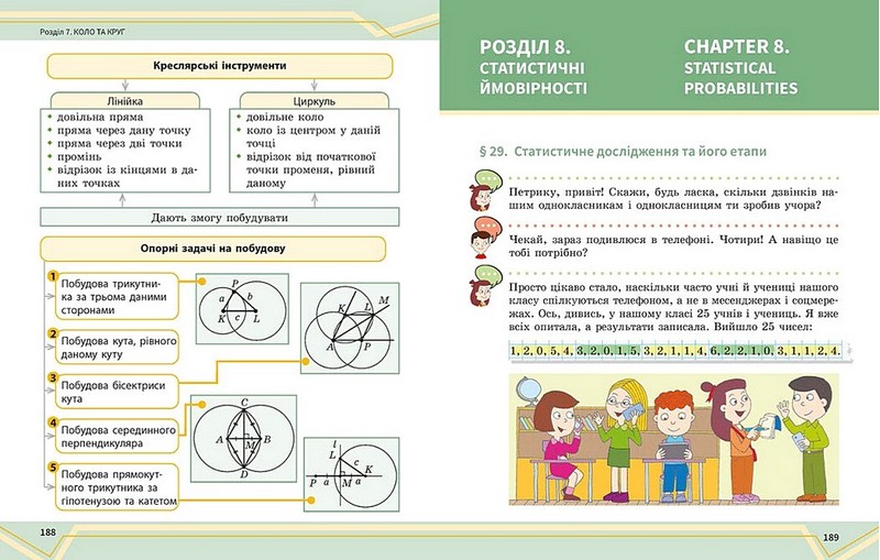 Підручник створено відповідно до модельної навчальної програми «Математика. 7–9 класи» для закладів загальної середньої освіти (автори Василишин М. С., Миляник А. І., Працьовитий М. В., Простакова Ю. С., Школьний О. В.). Теоретичний матеріал подано у формі діалогу між учнями та вчителями; практичний матеріал (рубрика «Тренажерний зал») структуровано за рівнями навчальних досягнень учнів. Кожний параграф містить цікаву для семикласників і семикласниць додаткову інформацію.