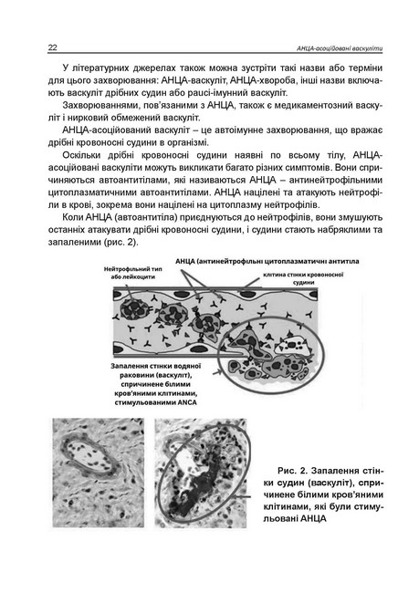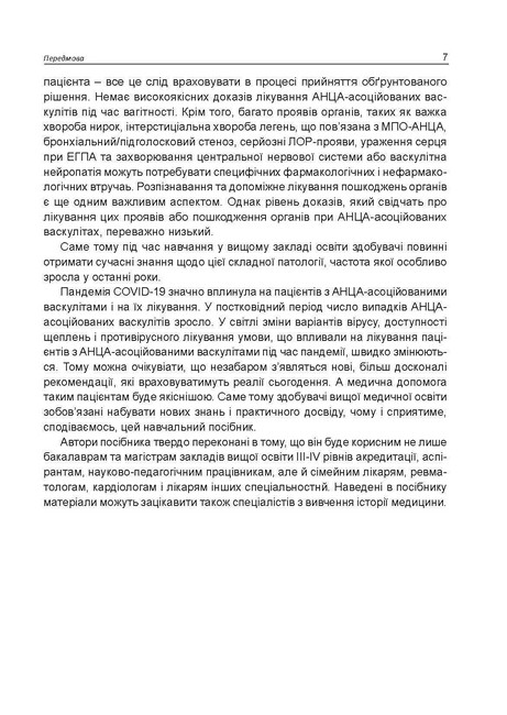 У посібнику наведено сучасні дані з етіології, патогенезу, патморфології, клініки, діагностики, лікування й профілактики АНЦА-асоційованих васкулітів, частота розвитку яких після пандемії COVID значно зросла. Обговорюються сучасні стандарти лікування й нові високоефективні лікарські засоби, можливості їх використання та побічні ефекти терапії. Посібник буде корисним не лише здобувачам вищої освіти, але й сімейним лікарям, лікарям-ревматологам, нефрологам та лікарям інших спеціальностей.