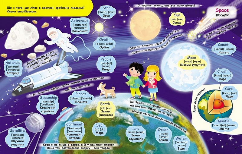 З такою яскравою книжечкою легко вивчити англійську, а наліпки, які входять до комплекту, зроблять навчання цікавішим! У цій книжці дитина познайомиться з лексикою, яка опише нашу планету.