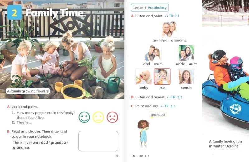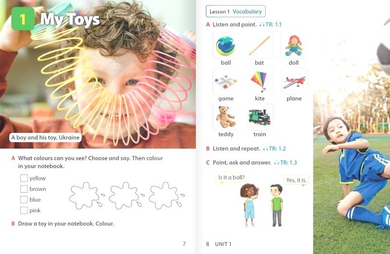 Кожна тема – юніт – складається із Unit opener, на якому зображено українських дітей у різноманітних ситуаціях. Юніт складається із п’яти уроків, серед яких: Vocabulary, Grammar, Grammar and Song, Phonics, Story. Матеріал підручника емоційно та змістово насичений, що в свою чергу зацікавлює учнів та формує позитивне ставлення до вивчення англійської мови. Яскраві, автентичні відео та якісні аудіо-матеріали допоможуть школярам глибше зануритись у світ іноземної мови.