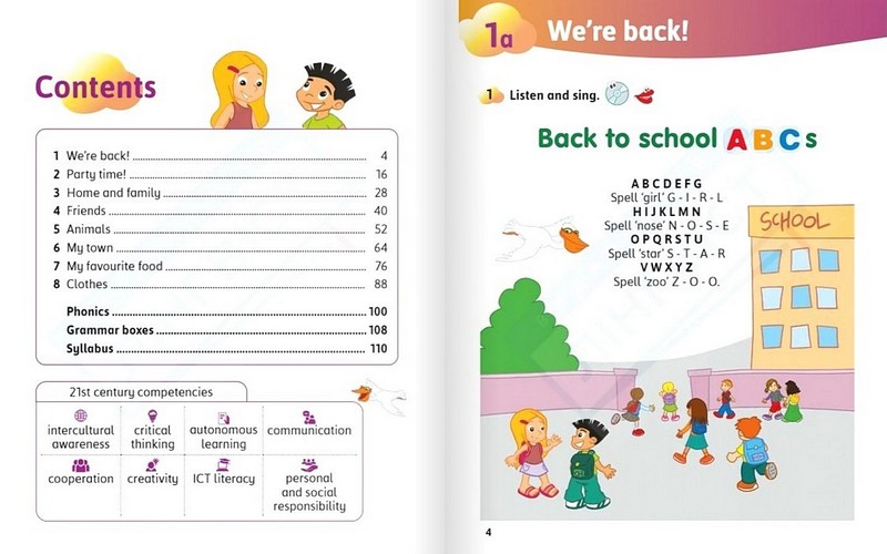 У підручнику представлені секції для повторення та відпрацювання практичних навичок використання мови, ігри й матеріал дляпоробок. Особлива увага приділяється навчанню моральних цінностей для того, щоб діти стали кращими представниками суспільства в майбутньому.