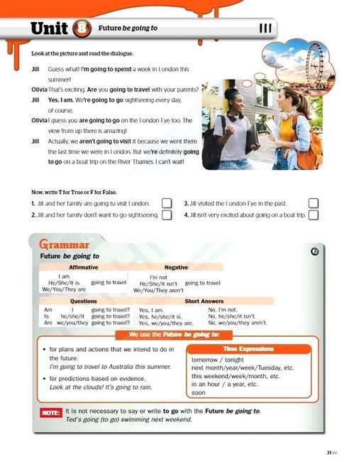 Граматичні структури подаються в контексті та проілюстровані кольоровими малюнками та фотографіями.