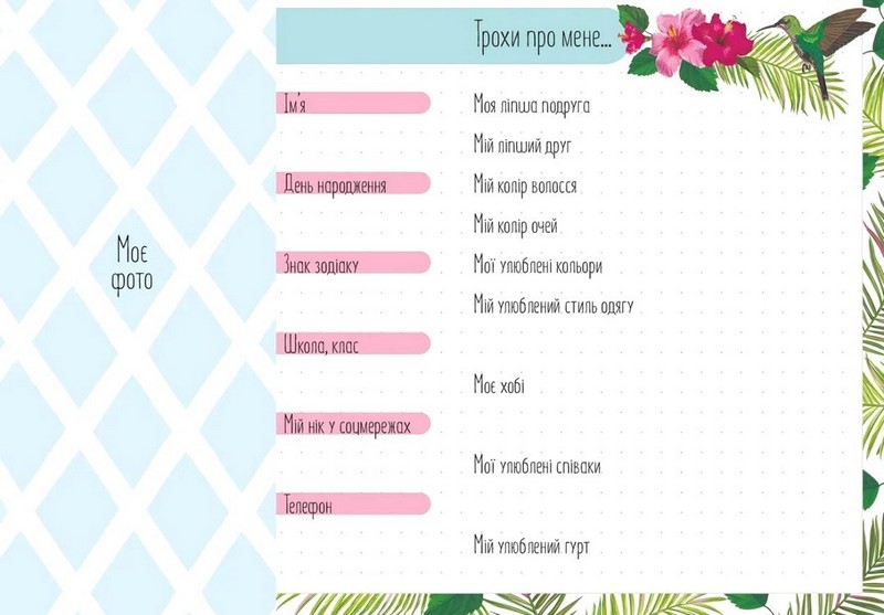 Альбом друзів розрахований на дівчат підліткового віку. Виданий у гарній твердій обкладинці, ілюстрований оригінальними малюнками. Альбом збереже чудову історію про дружбу і найяскравіші спогади шкільного життя.