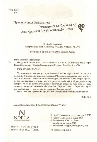 Четверта книжка Ніни Елізабет Ґрьонтведт. Уда починає навчатися у старшій школі, і майже одразу в неї з’являється коханий. Але яке воно, справжнє кохання? Чи можна закохатися в когось, кого зовсім не знаєш і з ким якось ніяково поруч? І чи завжди гарна історія про кохання закінчується щасливо? Уда відкриває для себе неймовірно романтичну історію Ромео та Джульєтти, яка завершується зовсім не гепі-ендом, – зате сповнена неземних почуттів, від яких йде обертом голова... Дорослі кажуть, що закоханість – то лише вплив гормонів. Чия ж правда?