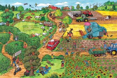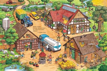 Книги серії «Мій великий вімельбух» - це картонки для найменших читачів. "На фермі" на дітей чекають різноманітні свійські тварини: від жвавих свинок до тупотливих коней. Малюнки в книжках вдало поєднують реалістичні зображення з тонким гумористичним змістом. Таким чином, дитина може годинами розглядати малюнки і знаходити щось нове для себе.