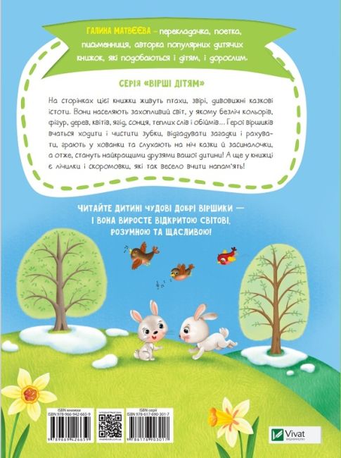 Вони яскраві й веселі, світ у них — навиворіт, а діва біжать підстрибом поруч із читачами. Вони вчать лічити і вигадувати,мають логопедичний ефект, їх легко є ятати... І найголовніше — вони стають улюбленими після першого прочитання.