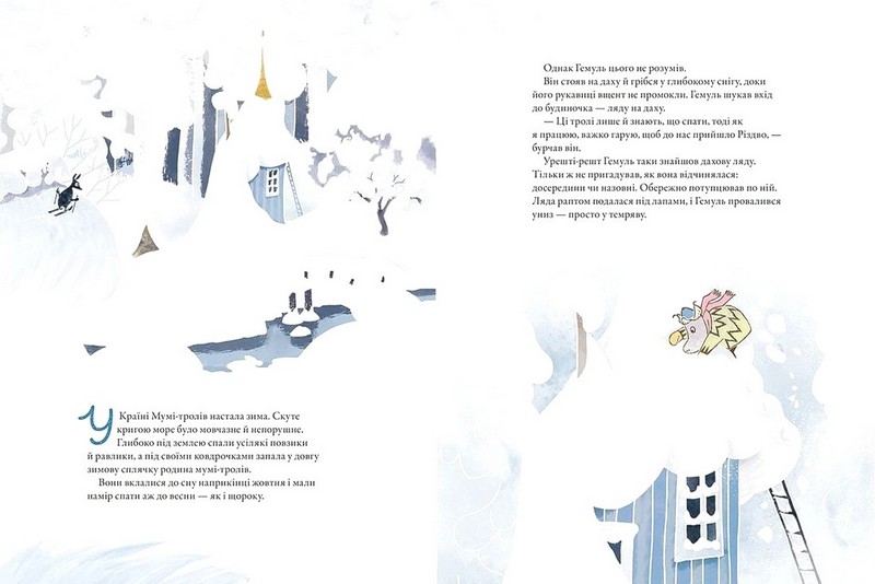 Улюблену оповідь Туве Янссон «Ялинка» переказали по-своєму автори Алекс Гаріді й Сесілія Давідссон і видали з новими ілюстраціями художниці Філіппи Відлюнд.Одного ранку в грудні урвався довгий зимовий сон родини Мумі-тролів. Світ за стінами будиночка змінився до невпізнання: щось біле й загадкове вкрило всю Долину Мумі-тролів, туди й сюди сновигали чепурулі й гемулі, обвішані подарунками й пакунками зі святковими наїдками та напитками. Усі перебували у схвильованому очікуванні чогось, що прямувало до Мумі-долини. Те загадкове Щось видавалося дуже небезпечним і називалося Різдвом.