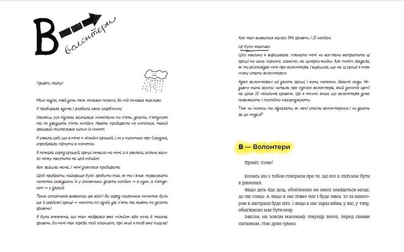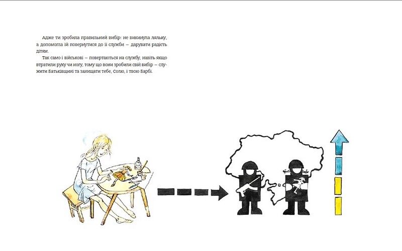 Книжка побудована як абетка, де кожна літера — це один із вимірів війни та миру навколо війни. У ній переплітається життя дитини в мирному місті і життя тата на війні. Соля телефонує татові на фронт, пише есемески та листи, розповідає про свої справи, школу, друзів, змагання, танці, домашніх тварин, а ще ставить дитячі й недитячі питання про війну. Як же татко із побратимами і посестрами там живе? Чи є на війні діти? Що їдять на війні? Чи можна на війні хитрувати? Чи буде тато інший після війни? А тато просто і чесно, а разом з тим бережно пояснює донечці все на світі.