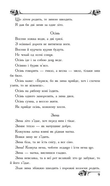 Відкривши цю книжку, читач потрапить у чарівний світ українського фольклору. Прислів’я, приказки, загадки, лічилки і скоромовки – ці духовні скарби з незапам’ятних часів живуть у народі, передаються з уст в уста, від покоління до покоління, збагачуючи нашу мову влучними висловами та дотепними жартами.
