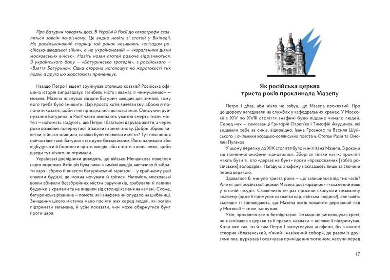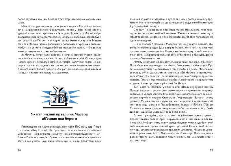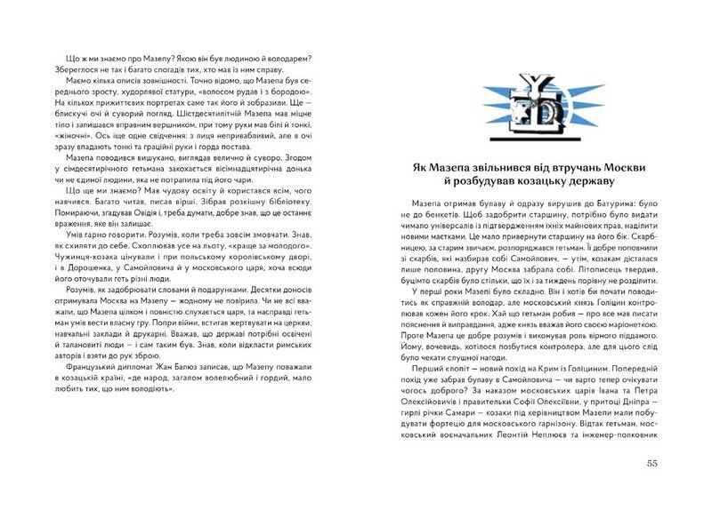 Визначний козацький діяч, романтизований у європейській культурі: його образом надихалися Вольтер, Гюго, Ліст, Байрон. Ще за гетьманового життя російський цар розв’язав проти Мазепи інформаційну війну, і ось уже четверте століття Москва його проклинає, а українці — славлять. Хто він? Герой своєї батьківщини, зрадник, романтичний коханець? Ця книжка — спроба ще раз поглянути, що ми знаємо про Мазепу, його чималу роль в історії Європи, непрості рішення та яскраве життя.