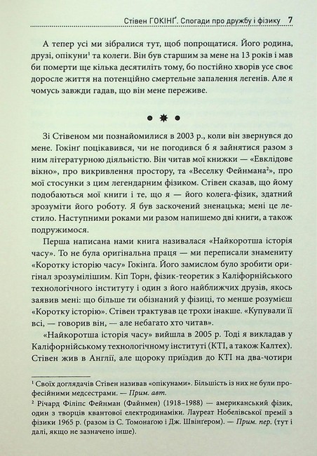 Ця книга відкриває Гокінґа не лише як генія фізики, але й як людину з тонким почуттям гумору, мужністю та здатністю надихати інших. Леонард Млодінов ділиться особистими спогадами про роботу над спільними проєктами, подорожами та розмовами, які залишили незабутній слід. Це щира історія про дружбу, яка показує, що навіть у найскладніших обставинах можна залишатися світлом для інших.