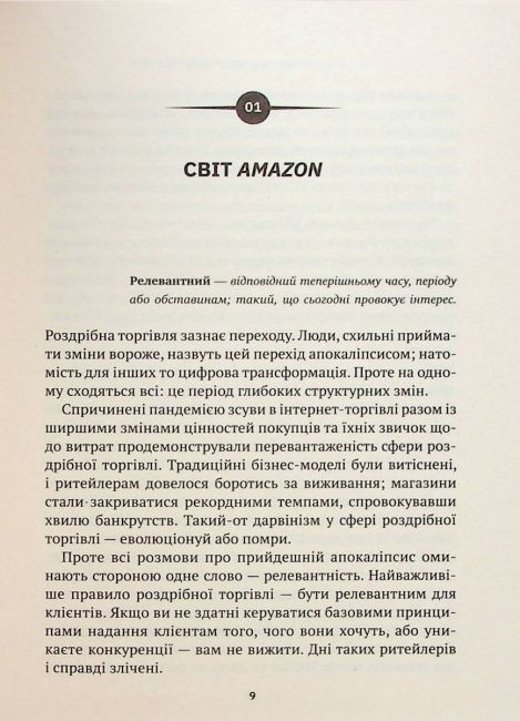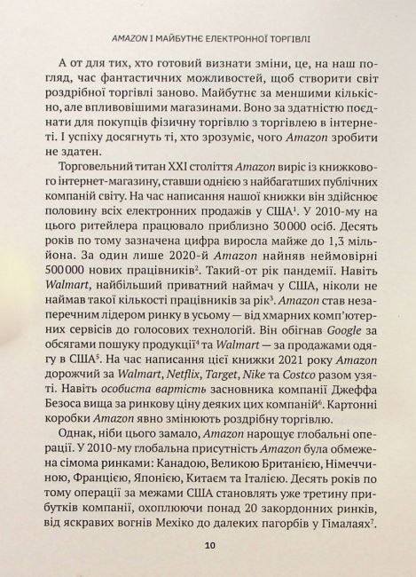 Титан комерції ХХІ століття виріс зі звичайного книжково ритейлера. Під час написання цієї книжки продажі Amazon складали щонайменше половину від усіх онлайн-продажів у США. Так, ідеться про одну з найдорожчих публічних компаній у світі, лідера ринку хмарних обчислень і голосових технологій. Для конкурентів Amazon нещадний і грізний. Для покупців —легкий і дедалі необхідніший, адже Amazon — це доступ до мільйонів продуктів із найшвидшим доставленням. А як щодо доступу за лаштунки найбільшої у світі клієнтоорієнтованої компанії? На вас чекає чимало провокативного й такого, про що прагнуть дізнатися власники великих і дрібних торговельних мереж. Amazon задає глобальні ритейл-тренди, тож будьте в тренді!