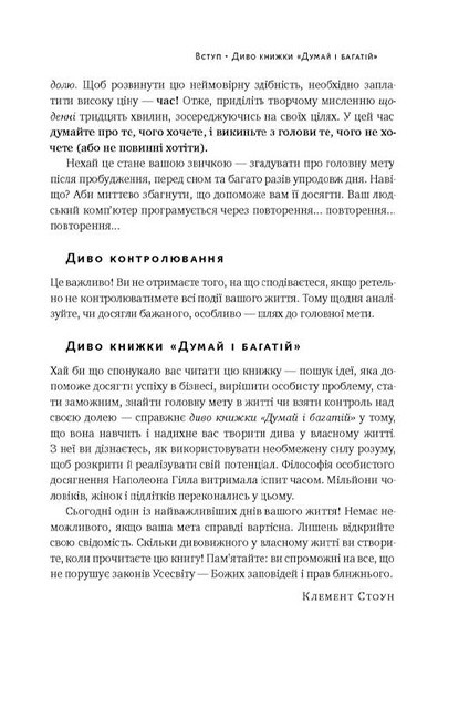 - «Думай і багатій» — це більше, ніж книга. Це система мислення, яка допомогла тисячам людей у світі змінити долю. Почніть читати — і зробіть перший крок до власного успіху.