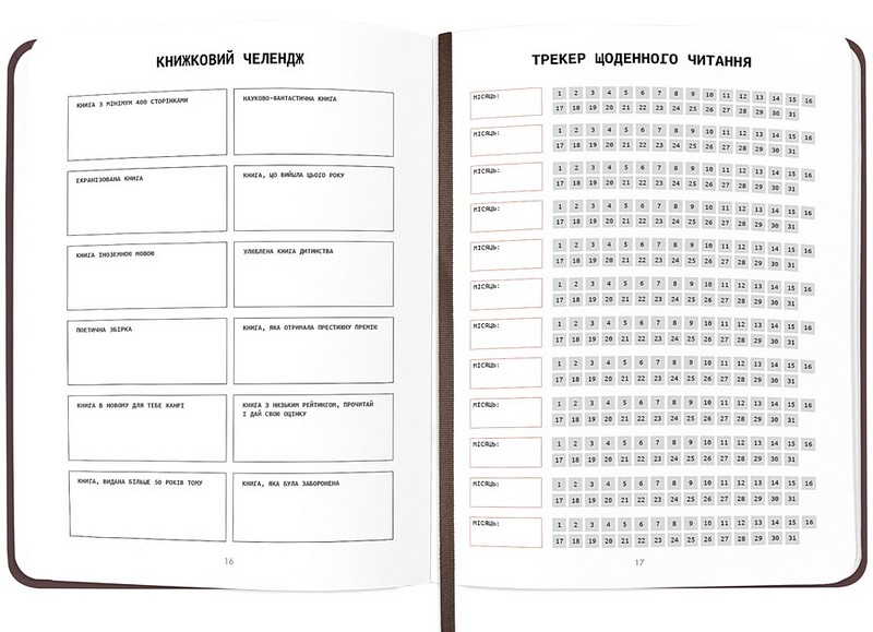 - книжковий челендж, трекер щоденного читання та запитання для глибокого аналізу книги і саморефлексії