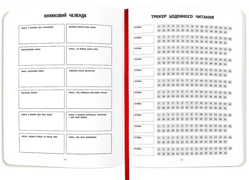 - книжковий челендж, трекер щоденного читання та запитання для глибокого аналізу книги і саморефлексії