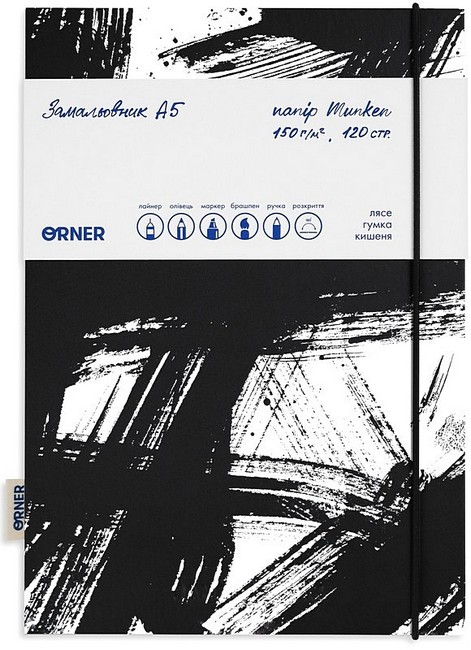 - книжковий папір із ніжним кремовим відтінком, що має достатню щільність і текстуру для малювання такими інструментами, як лайнер, олівець, маркер, брашпен, ручка.