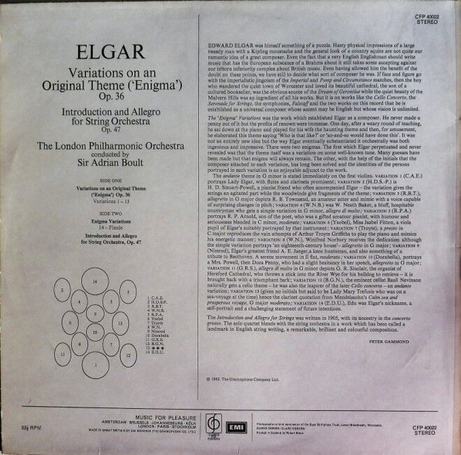Elgar / The London Philharmonic Orchestra / Sir Adrian Boult – Enigma Variations / Introduction & Allegro For Strings (Vinyl)