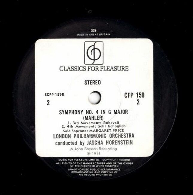 Mahlen, London Philharmonic Orchestra, Horenstein – Fourth Symphony (Vinyl)