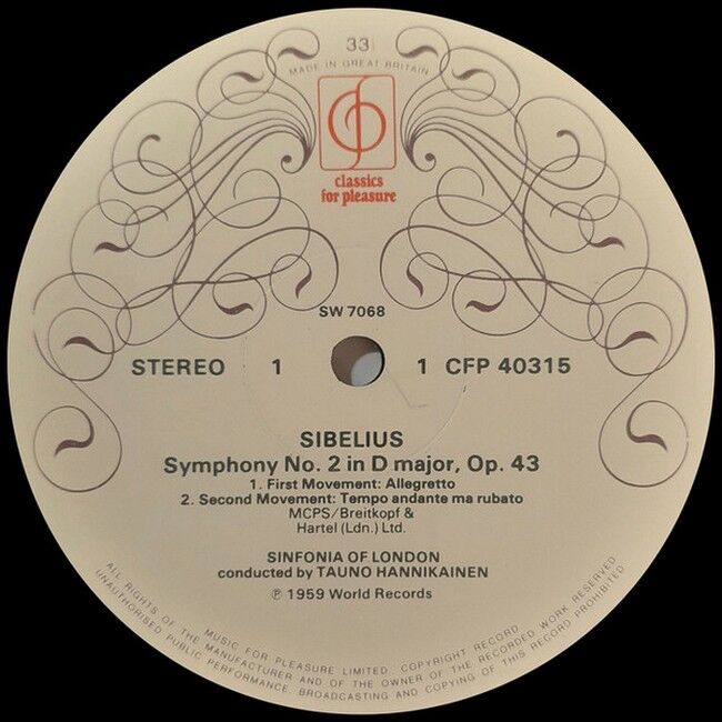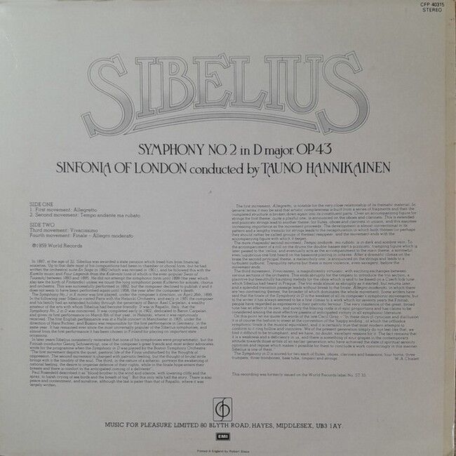 Sibelius - Sinfonia Of London - Tauno Hannikainen – Symphony No.2 In D Major, Op. 43 (Vinyl)