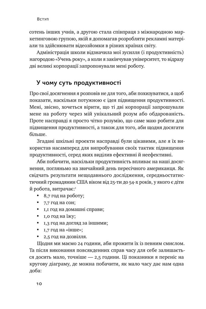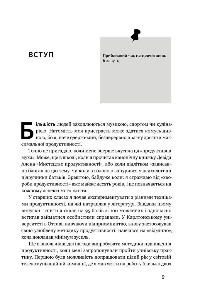 Справжня пристрасть життя автора цієї книжки — продуктивність. Він випробовував на собі найрізноманітніші методики та зрештою вирішив поставити експеримент: на рік відклав усі справи i почав перевіряти на собі мислимі й немислимі техніки підвищення ефективності. Протягом 365 днів він поглинав усю інформацію, яку міг знайте, медитував по 35 годин на тиждень, прокидався o 5:30, живий у повній ізоляції, спілкувався з гуру продуктивності, та в результаті описавши найдієвіші техніки.