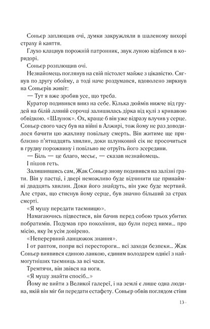 Інтрига, навколо якої розгортаються події роману, пов’язана з одвічною загадкою людства: походження, особистість, родина Ісуса Христа. Відповіді на цю загадку активно, але з ризиком для власного життя шукають герої книги — гарвардський учений Роберт Ленґдон та його несподівана супутниця, криптограф Софі.