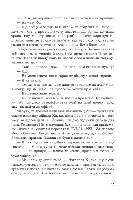 • «Касація» — перша книга серії про адвокатку Йоанну Хилку, де розповідається про складну справу, що змінює життя героїв.