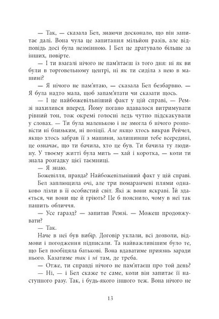 Шістнадцять років тому Рейчел Прайс зникла. Наче випарувалась, залишивши дворічну дочку Бел в автівці на узбіччі. Рейчел давно вважають загиблою, проте соцмережі ніяк не можуть вгомонитися, і зниклу нібито помічають то у Франції, то в Бразилії, навіть десь поблизу — у Нью-Гемпширі. І родині Прайсів пропонують взяти участь у зйомках документального фільму про ті події. Хай як Бел неприємна перспектива копирсання в минулому, вона пообіцяла батькові, тож мусить якось усе це перетерпіти, поки життя знов не стане нормальним.І тут несподівано Рейчел Прайс з’являється. І життя вже ніколи не стане нормальним. Історія Рейчел неймовірна. Та чи правдива? Поки камери працюють, Бел мусить це з’ясувати.