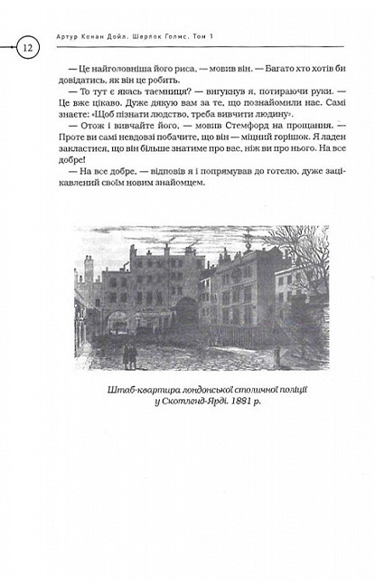 Перший том повного видання історій про Шерлока Голмса — це початок легенди, що підкорила мільйони читачів у всьому світі. Тут зібрано перші повісті та оповідання, включаючи «Етюд у багряних тонах» — знайомство з Голмсом і доктором Ватсоном, а також «Знак чотирьох» та перші пригоди з «Пригод Шерлока Голмса». Атмосфера туманного Лондона, загадки, які здаються нерозв'язними, і геній, що бачить те, що інші втрачають — усе це робить цю збірку справжнім скарбом для книголюба.