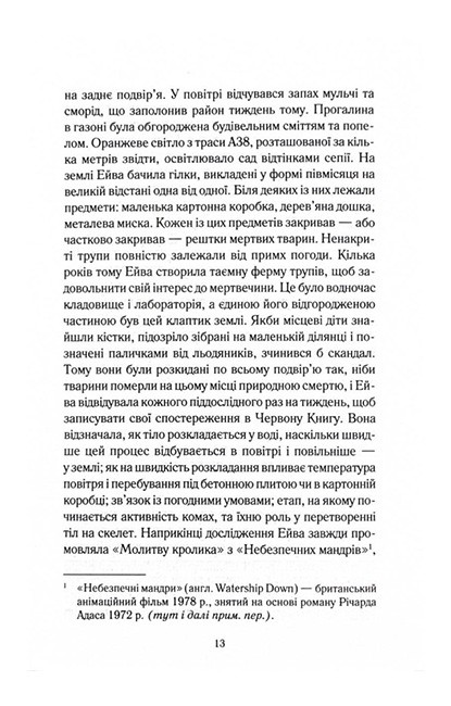 Деякі історії вражають із першої сторінки. "Смертоносні тварини" — саме така книга. У тринадцять років Ейві знаходить перше тіло, і з цього моменту її життя назавжди змінюється. Таємниці маленького містечка, темні шрами минулого і небезпека, що підстерігає на кожному кроці, створюють моторошну, але водночас захопливу атмосферу. Це роман, де дитячі страхи стикаються з жорстокою реальністю дорослого світу.