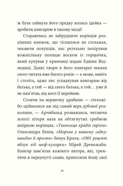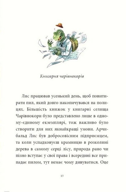 У лісі поблизу селища Чарівнокори, у дуплі дуба, притулилася книгарня Арчибальда Лиса. Там кожна тварина може залишити написану власноруч книгу та сподіватися, що одного дня її придбають. Чи багато там книжок? Уявіть собі…