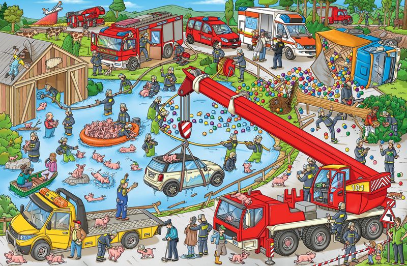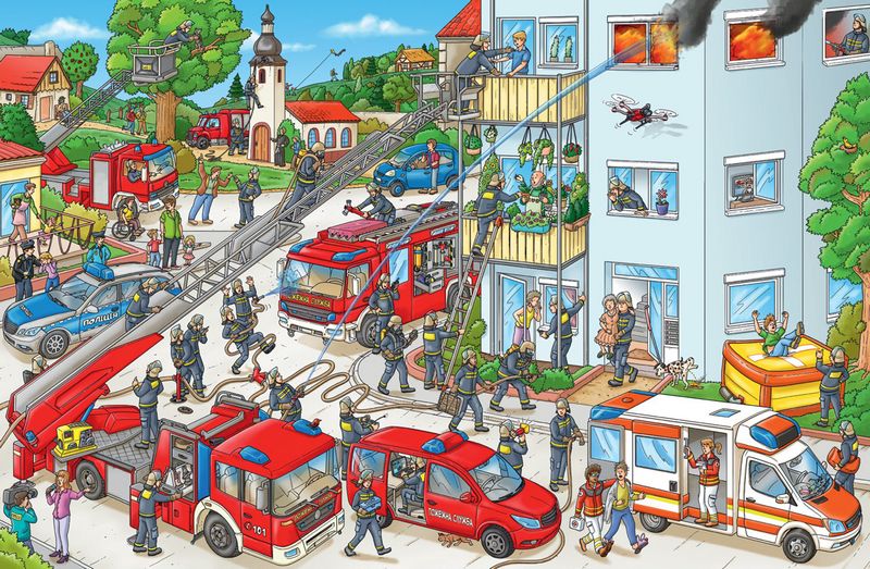 Будні вогнеборців — зовсім не буденні. На сторінках цього віммельбуху оживає безліч пригод пожежної команди!