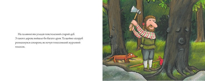 Яке бажання ви б загадали, якби зустріли лісову фею?Щойно лісоруб розмахнувся сокирою, як почув тихесенький журливий голосок: «Не кривдь моє дерево, і я виконаю будь-які три бажання — твої чи твоєї сім’ї». Здавалося б, ось воно, щастя! Але не все так просто… Аксель Шеффлер створив власну ілюстровану версію за мотивами англійської казки.