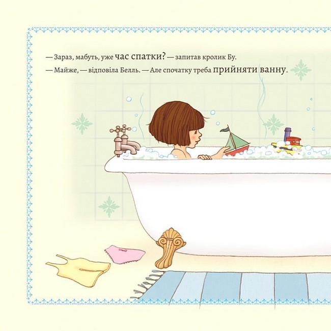 Белль і Бу час спати. Час для ванни, час для молока й печива, час для казки на ніч. Та коли Бу вирішує пограти в хованки, він мало не забуває про поцілунок на ніч. А це найважливіше в підготовці до сну.
