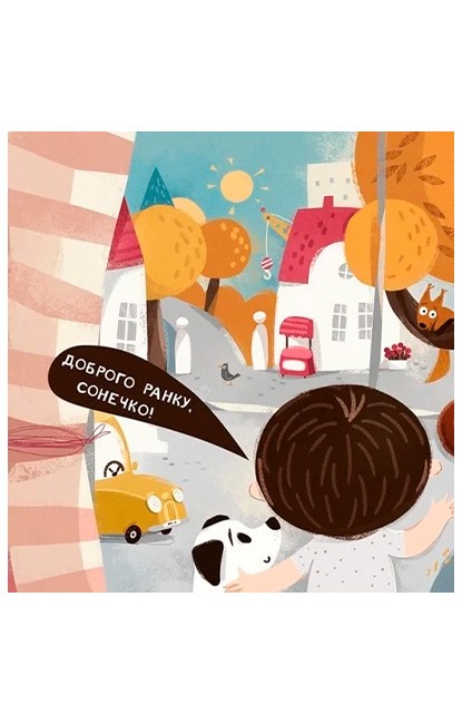 Бодьо та Мися радiсно розпочинають день. Дiти вiтаються iз сонцем, iз бiлкою, яку помiтили за вiкном, i навiть з автiвками на вулицi. Потiм вони чистять зубки, одягаються та снiдають. Не забувають також погодувати песика й кицю. I в усьому їм допомагають маленькi читачi та читачки.