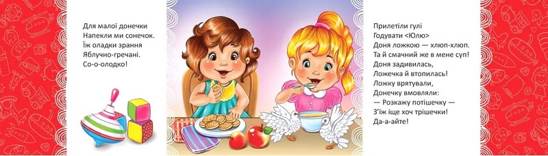 Про вередування за столом із «Примовлянками до сніданку» дитинка й не згадає. Герої книжки так смачно їдять кашку солоденьку, духмяні оладки, п’ють сік… І все це під веселі віршики, що за компанію з ними й малюкові захочеться з’їсти свій сніданок до останньої ложки.