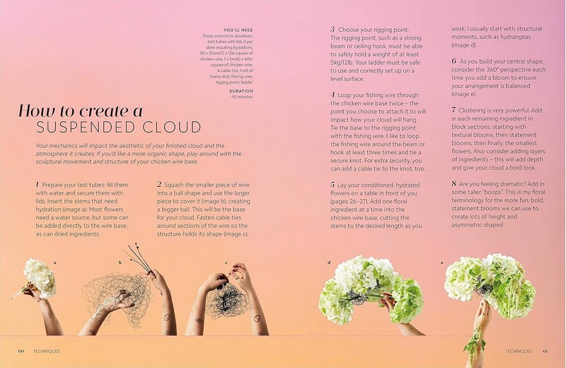 - Чотири розділи квіткових композицій згруповані за порами року, а кожен проект представлений у вигляді рецепта, доповненого рубрикою, пов'язаною з їжею.