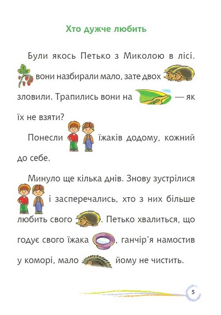 Усім відомо, що читання – одне з найцікавіших занять. Проте іноді діти втрачають інтерес до книги, ще не встигнувши як слід навчитися читати. Звісно, формування навичок швидкого й вільного читання вимагає тривалої наполегливої праці. Та є способи зробити цей процес веселим і цікавим. Використаний у текстах даної серії принцип «слово – малюнок» захоплює малюків і перетворює працю на гру. В такій грі літери жвавіше складаються в склади, а склади — у слова.