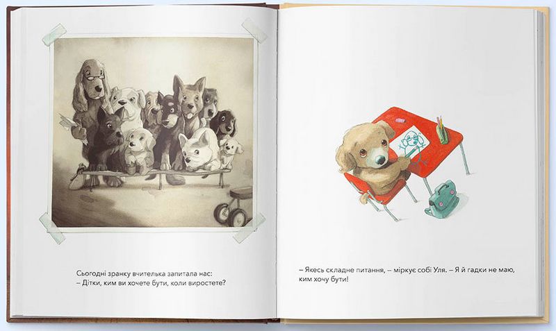 Вчителька у школі розпитує учнів, ким вони хочуть бути, коли виростуть. Хтось мріє стати машиністом, хтось лікаркою, хтось поліцейським. А ось Уля поки не знає відповіді на це питання… Книжка допоможе налагодити з дитиною діалог про важливе питання — вибір майбутньої професії!