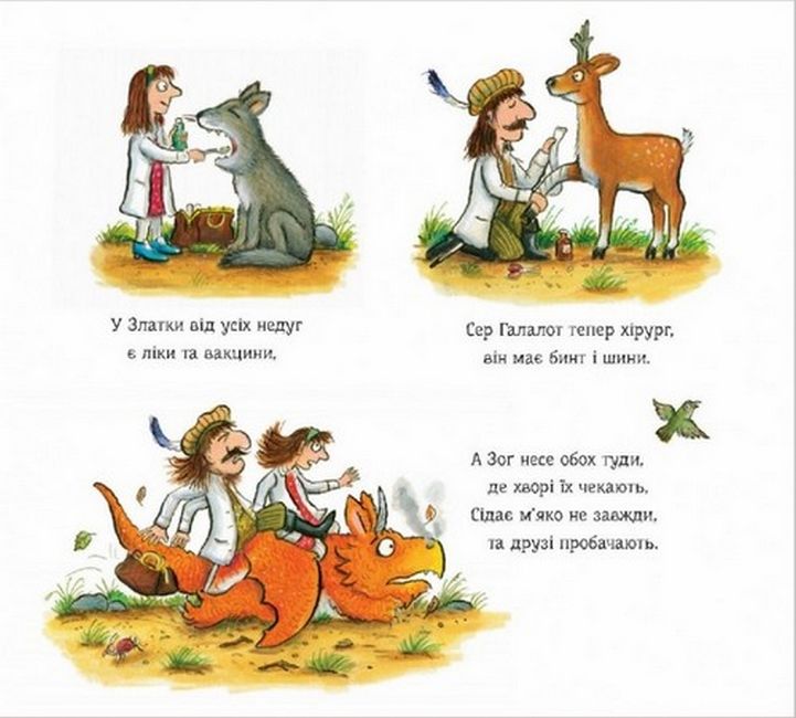Книга розповідає про цікаві пригоди дракончика Зоґа, який допомагає принцесі Златці та серу Галалоту виконувати дуже важливо місію – лікувати тварин від різноманітних недуг. За допомогою нашого крилатого героя лікарям легко дістатись і до лева, і до русалки, і, навіть, до єдинорога.