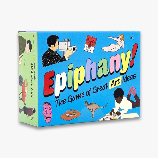 From revelation to creation: play this memory game to learn about twenty-five 'eureka' moments in art history from 1907 to today. Ever pondered the ground-breaking moment an artist came up with a great idea? Epiphany! is a new and exciting twist on the ever-popular memory game. Each pair of cards depicts a different artist epiphany as a split scene, adding extra sophistication to the gameplay. From Picasso's first African art encounter in 1907 to the exhibition that led to the formation of the Guerrilla Girls in 1985, each matching pair will have players paging through the accompanying booklet to learn more about the epiphany.