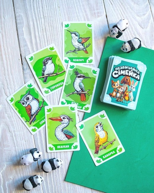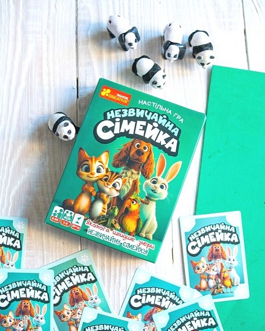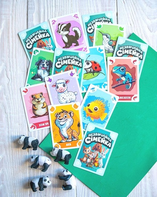 Настільна гра «Незвичайна сімейка» — це динамічне карткове змагання для дітей і дорослих. Ваше завдання — зібрати якомога більше повних сімейок із 6 карток.