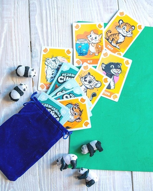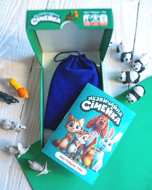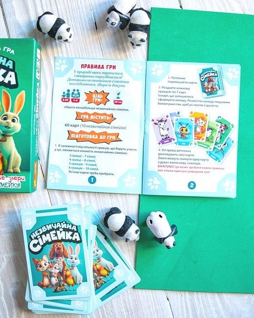 У комплект входять 60 яскравих карт із 10 унікальними сімейками, зручний велюровий мішечок для зберігання та прості правила. Кожна партія триває близько 30 хвилин, а компактний формат дозволяє брати гру з собою в дорогу.