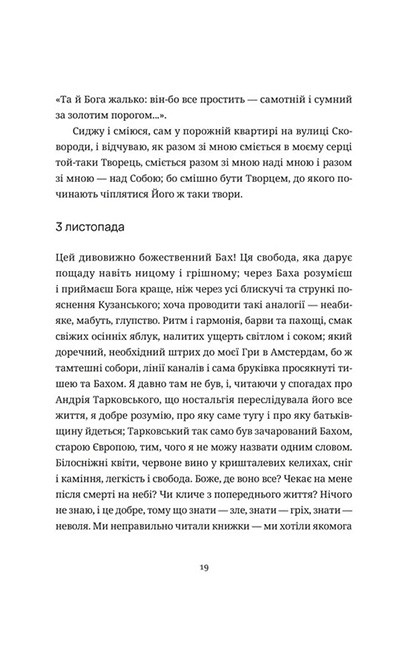 Книга поєднує есеїстику, філософські роздуми та поетичну прозу. Вона буде цікава інтелектуальним читачам, які цінують літературу з глибинним підтекстом, шукають сенси та хочуть відкрити для себе нові горизонти мислення.