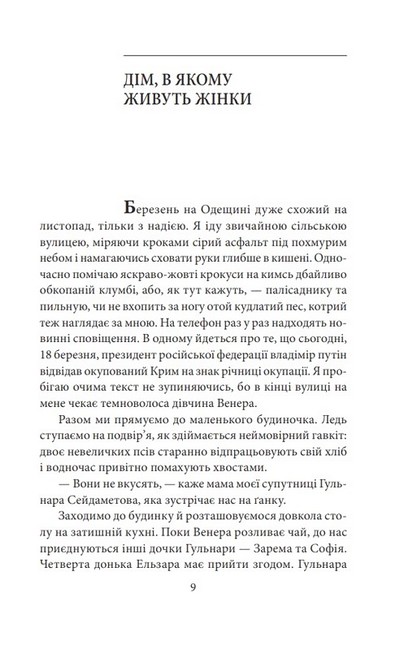 Цю книжку склали чотирнадцять історій кримськотатарських родин, які розповіли авторці різні люди, відомі й невідомі. У них спільний біль і спільна пам?ять про жахіття війни, гоніння, депортації, голод. З покоління в покоління їх переслідує один і той самий ворог, яку б нову назву він щораз для себе не придумував: чи то російська імперія, чи то срср, чи то російська федерація. Тортури, до яких він вдається, мають приборкати кримських татар, а в разі непокори нелюди просто знищують і так нечисленний народ. Ніби наяву читач побачить змучених підлітків, які збирають бавовну в Голодному степу Узбекистану. Розпач жінки, яку виганяють з рідної домівки. Горе дружини загиблого захисника України. Та об?єднані ці родини не тільки спільним болем, а й спільним прагненням: повернути собі Батьківщину, жити у вільному Криму.