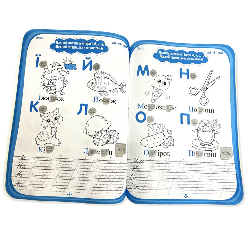 Мега-планшет «Розвивайлик. Букварик» — це яскрава розвивальна розмальовка для перших кроків дитини у світі літер та читання. На сторінках зібрані різноманітні вправи: обведення друкованих літер, прості прописи, добір літери до малюнка, розпізнавання звуків, розфарбовування за зразком, завдання на уважність і запам’ятовування.