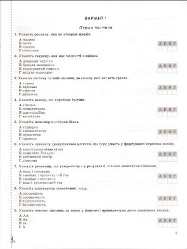 Збірник призначено для підготовки та проведення письмової державної підсумкової атестації за курс основної школи з біології в закладах загальної середньої освіти. Містить 10 варіантів атестаційних робіт. Кожен варіант складається з 27 тестових завдань різних видів. Посібник містить завдання, які передбачають аналізування діаграм, графіків, таблиць, текстів. Завдання з відкритою відповіддю перевіряють уміння встановлювати причинно-наслідкові зв'язки, пояснювати взаємозв'зв'язок будови та функції, порівнювати, узагальнювати, моделювати біологічні процеси. Запропоновано чітку систему оцінювання.
